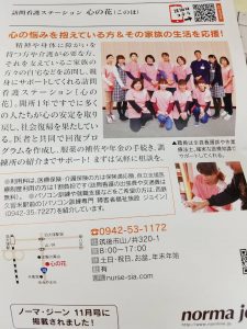 訪問看護ステーション心の花が、久留米のフリーマガジン『ノーマ・ジーン』に掲載されました!