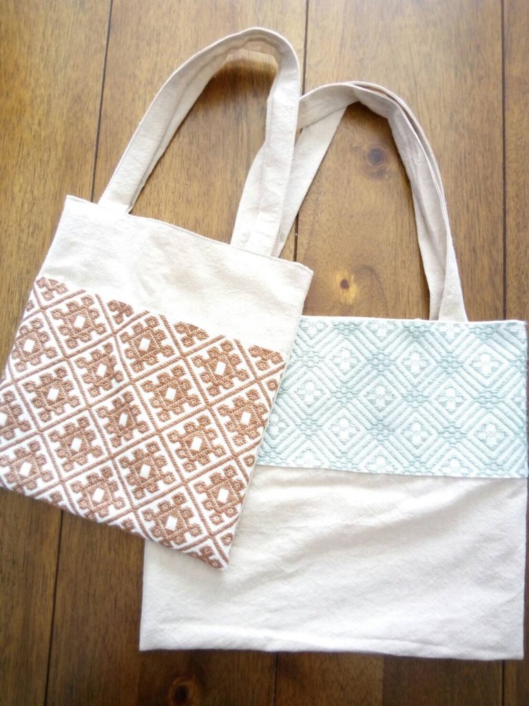 こぎん刺しトートバッグです😊このデザインもひと針ひと針、丁寧に仕上げられており、素晴らしいクオリティです。